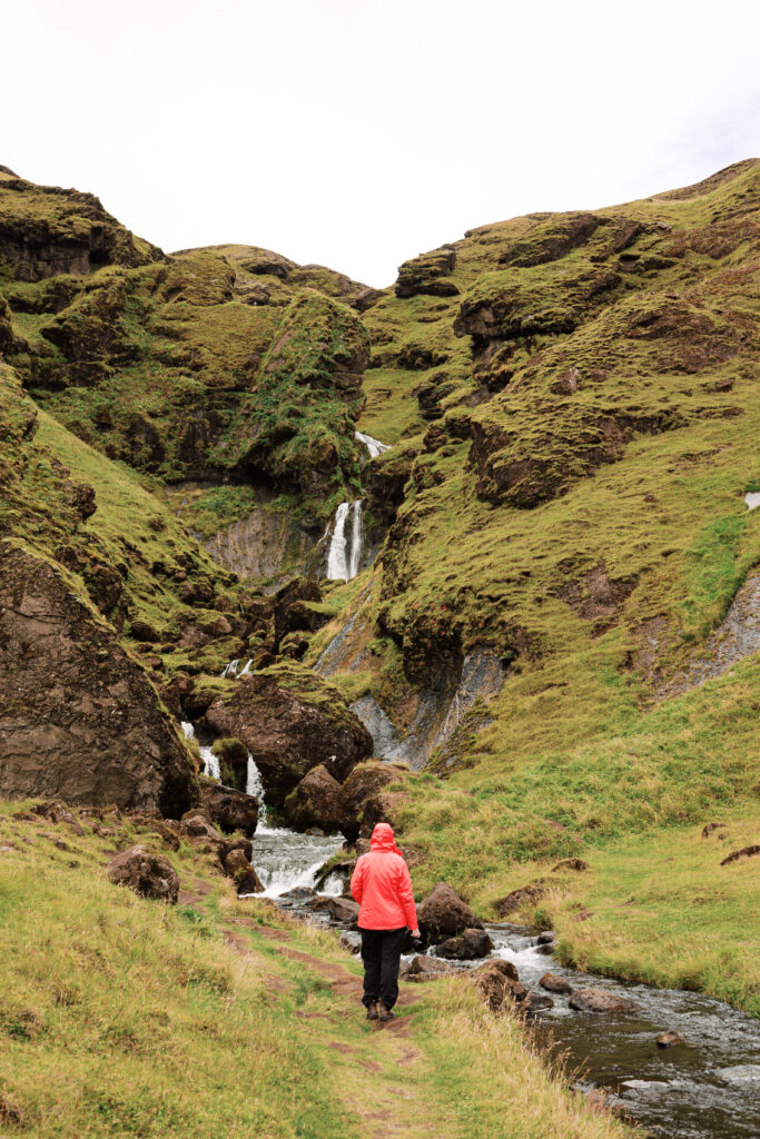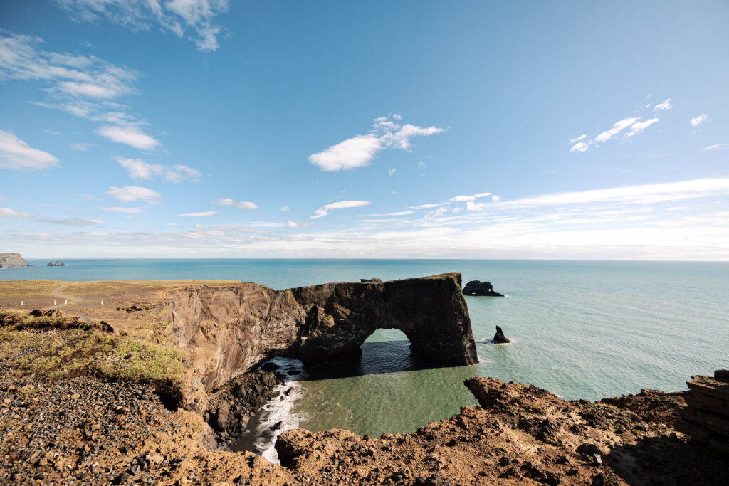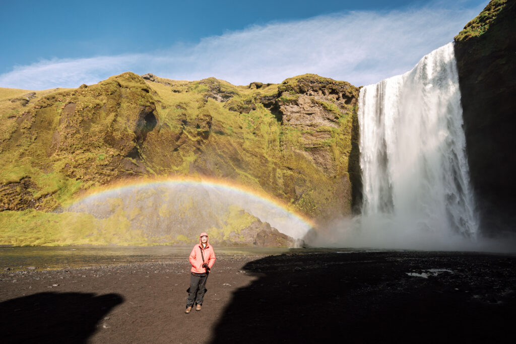 We began driving the Ring Road on this day, heading East towards Vik. The first waterfall we hit was Seljalandsfoss. There was a hidden waterfall here called Gljufrabui that is slowly becoming more popular, and we somehow accidentally missed it. From here, we could’ve stopped at Seljavallalaug Swimming Pool, the oldest natural swimming pool in Iceland (but we skipped it for time’s sake), and instead headed straight to Skogafoss. We loved this waterfall! You can view it from the bottom, or hike to the very top (we skipped this because I was sick).