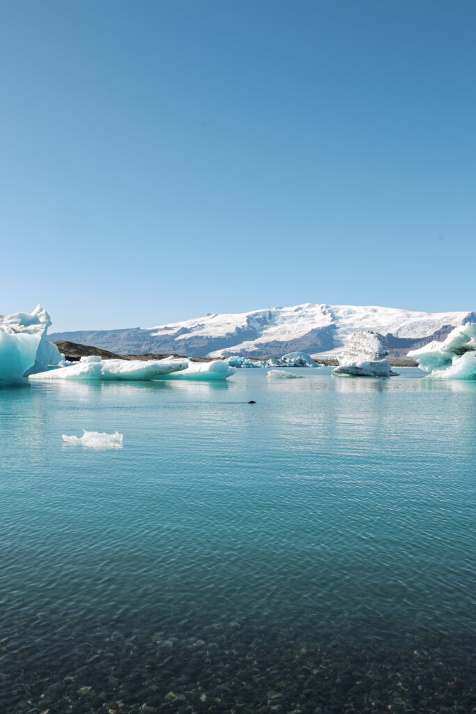 After leaving Vestrahorn, we hit up Diamond Beach and Jökulsárlón Glacier Lagoon. Jökulsárlón was incredibly busy when we arrived (around lunchtime). Here you can do a boat excursion and go kayaking or cruising around the glaciers. We enjoyed our time at Jökulsárlón (they have bathrooms!), where we saw lots of seals and birds, and had lunch at one of the many food trucks parked there. We walked from the lagoon under the interstate pass to Diamond Beach. It was an easy, flat walk, and it was great because we didn’t have to move our vehicle and pay for parking again.